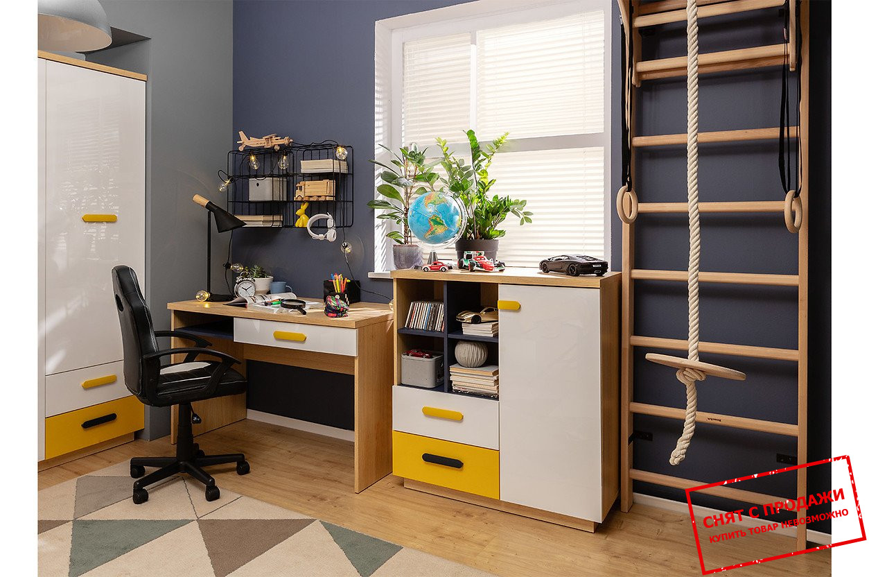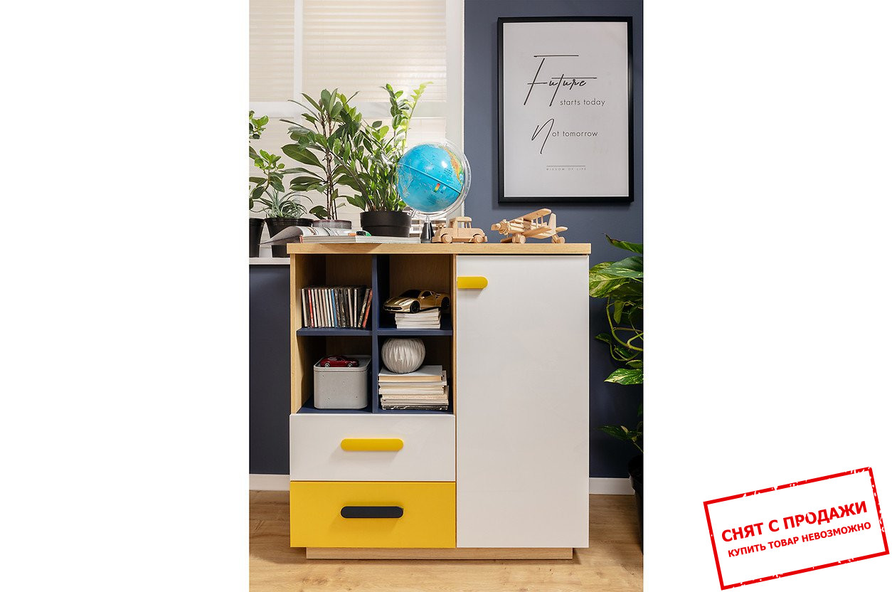 Комод Wesker KOM1D2S BRW 1-дверный с 2 ящиками Дуб натуральный/темно-синий/белый глянец/желтый