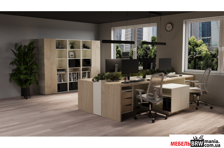 Шкаф книжный Connect F Intarsio Дуб кремона котта/стоун бейж