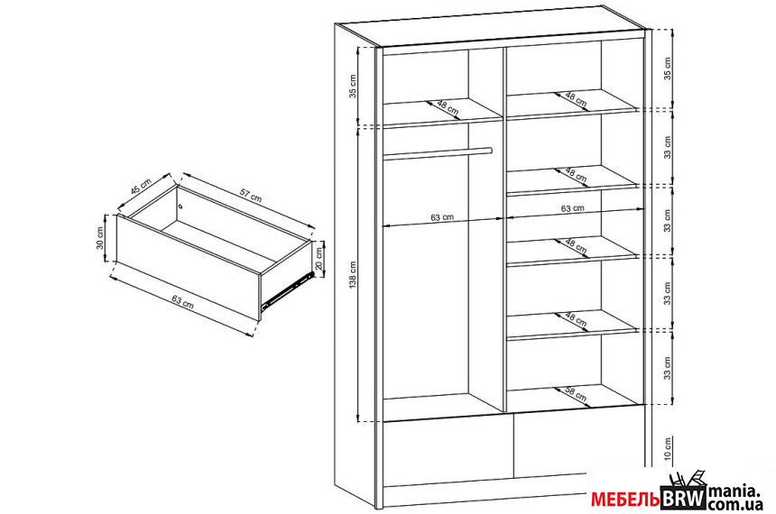 - Количество выдвижных ящиков 2