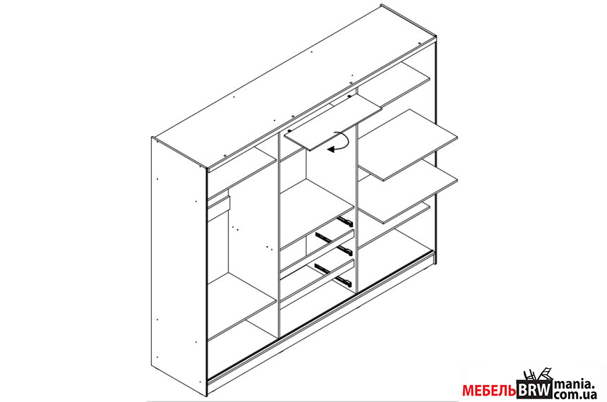 Описание: Шкаф-купе ТВ / TV 250 Perfect Home 3-дверный с зеркалом Графит