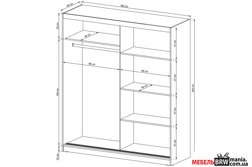 Описание: Шкаф-купе Вики II / Wiki II 180 Perfect Home 2-дверный с зеркалом Белый