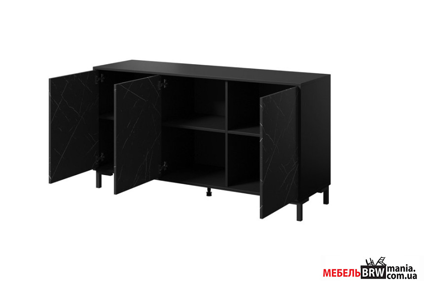 Комод Cama Marmo 150 3D 3-дверный Черный мат/черный эффект мрамора