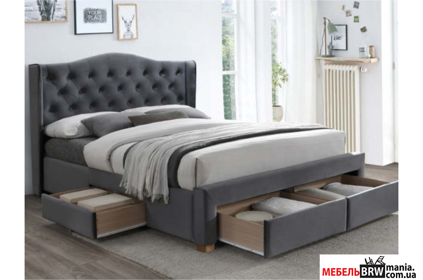 Описание: Кровать (с ламелями) Signal Aspen II 160x200 Velvet двуспальная Серый