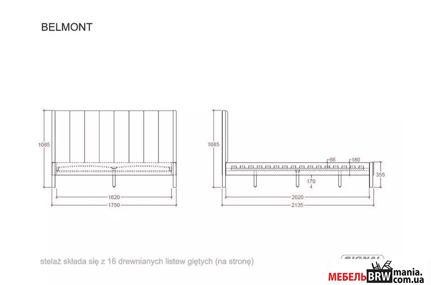 Кровать (с ламелями) Signal BELMONT RAVEN 160x200 двуспальная Светло-серый/светлый орех