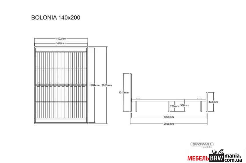 Кровать (с ламелями) Signal BOLONIA 140x200 двуспальная Белый