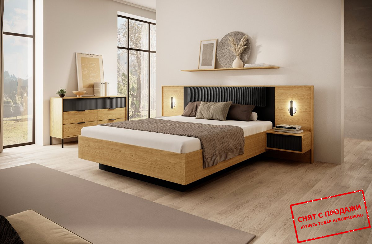 Цветовая палитра в гармоничном сочетании оттенка «дуб балтик» с черными красками создает сдержанный, стильный эффект. Такой тандем идеально подходит для оформления уютной, но одновременно выразительной спальни. Сочетание цветов визуально структурирует пространство, добавляет глубины и акценты, а также способствует расслабленной атмосфере. Черный цвет всегда ассоциируется с роскошью и стилем. В сочетании с рифленой поверхностью он приобретает особую элегантность, делая мебель центральным элементом дизайна.