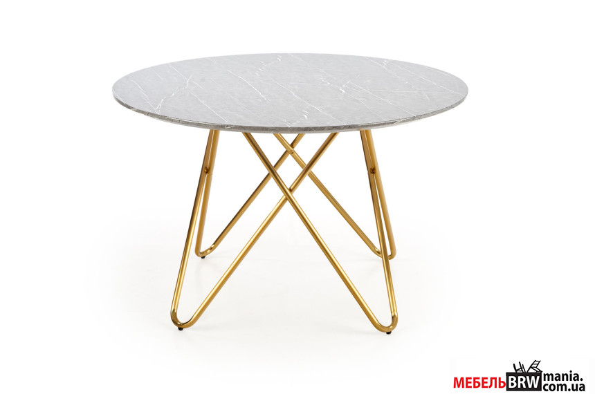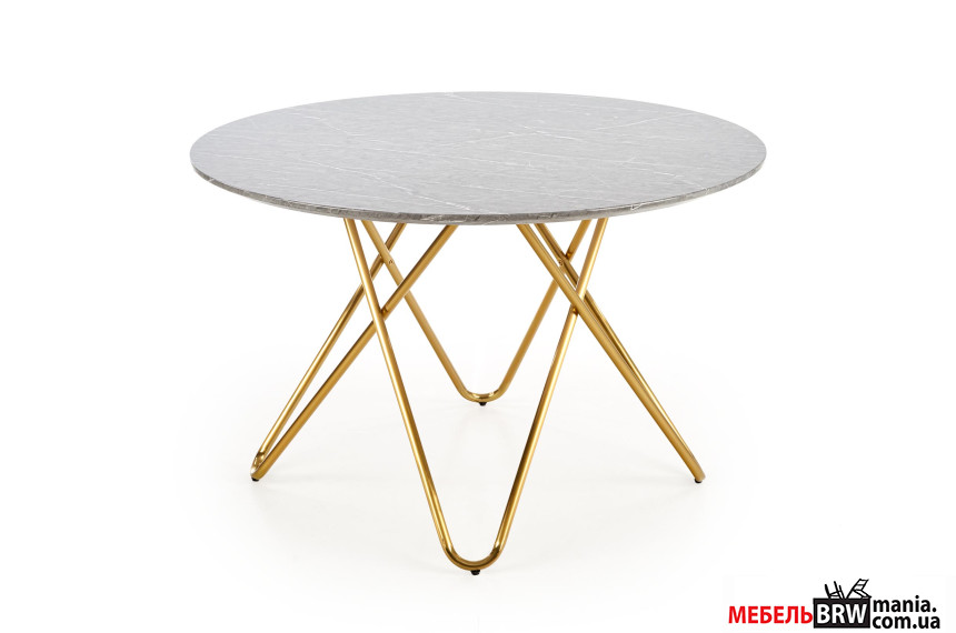 СТОЛ HALMAR BONELLO от изготовителя мебели из Польши HALMAR поможет решить проблемы по поводу обустройства жилища по вашему вкусу комфортно и без лишних нервов. Темперамент того или иного помещения тоже формируется не просто так, а зависит от мелких деталей, не говоря уже о более существенных атрибутах. Обеденный стол имеет круглую форму. Важная характеристика стола БОНЕЛЛО от ХАЛМАР зависит от степени качества материалов, из которых изготовили изделие, в нашем случае это о хромированный металл и ламинированная плита МДФ. Оттенок «серый мрамор» для столешницы выбран очень удачно, а золотые ножки – сплошная элегантность. В пользу приобретения играет все – цена, качество, стиль. В любое удобное время будем уместно купить СТОЛ HALMAR BONELLO.
