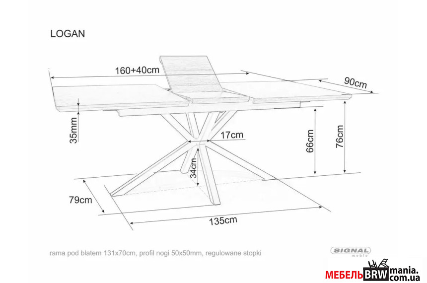 Стол раскладной Signal LOGAN CERAMIC 160x90/200 Белый/черный мат
