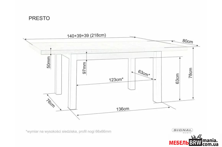 Стол раскладной Signal PRESTO 140x80/218 Дуб артизан/черный