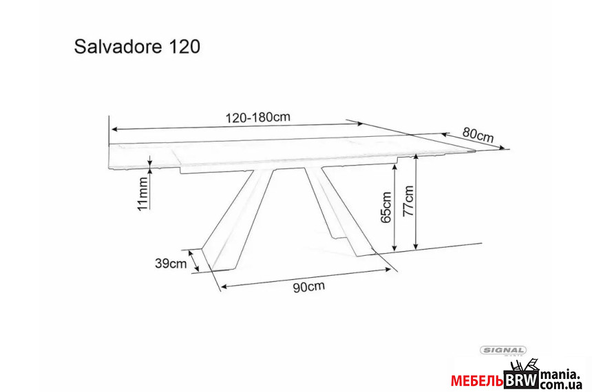 Стол раскладной Signal SALVADORE 120x80/180 Черный мат