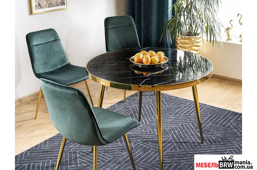Описание: Стол обеденный Signal Calvin 100 Черный эффект мрамора/золотой