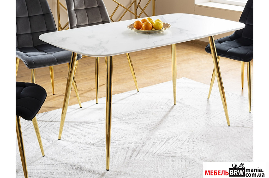 Стол обеденный Signal Ceres 140x80 Белый эффект мрамора/золотой