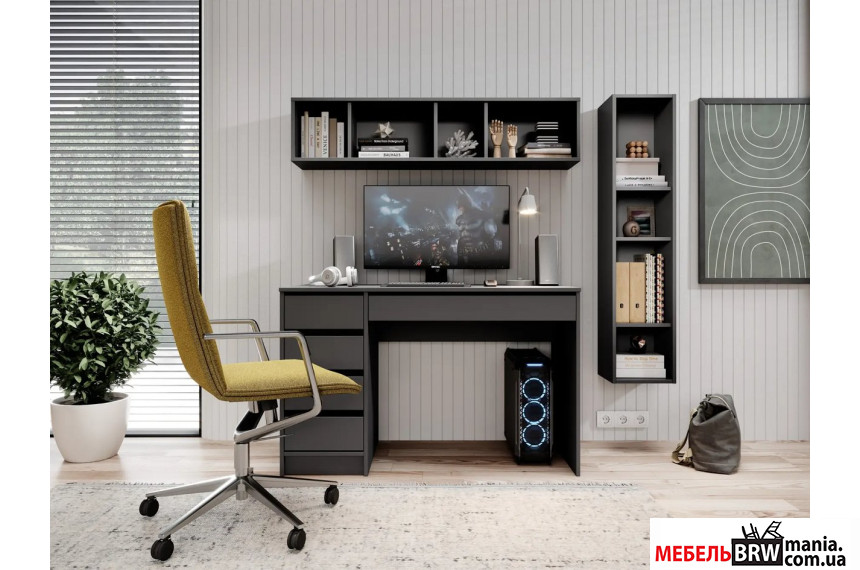 Стол туалетный компьютерный, письменный Perfect Home Ада / Ada 5S/120 с 5 ящиками Антрацит