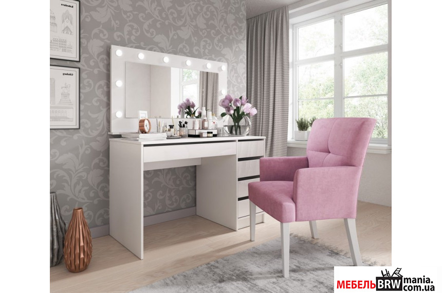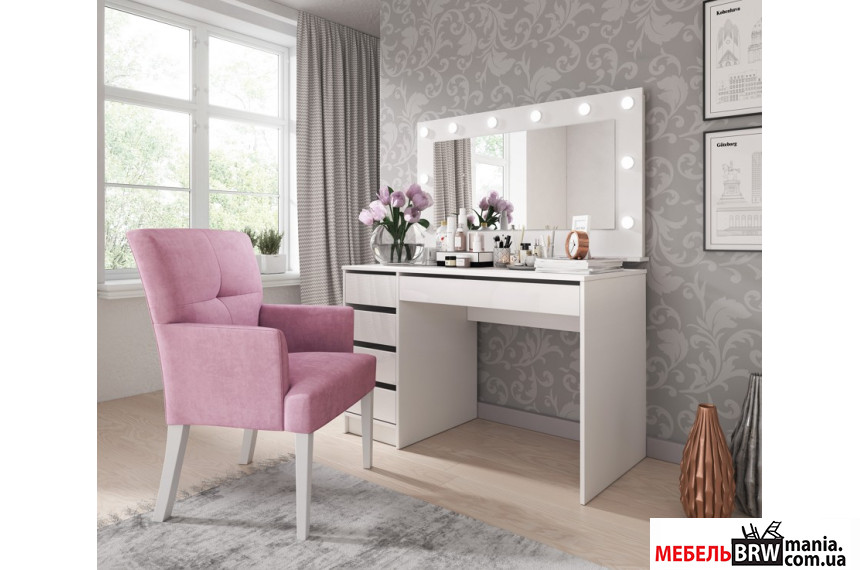 Стол туалетный компьютерный, письменный Perfect Home Ада / Ada 5S/120 с 5 ящиками Белый глянец