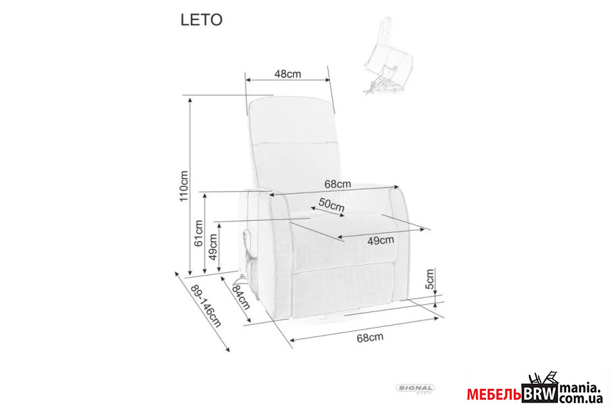 Кресло раскладное Signal LETO VELVET с функцией вертикализации