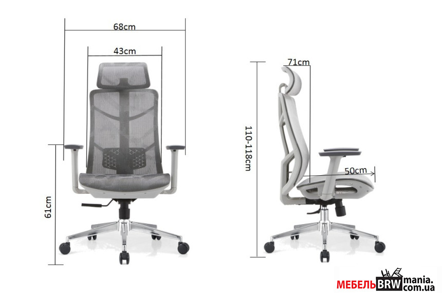 - Подлокотники, высота сиденья, поддержка поясницы, подголовник – регулируемые.