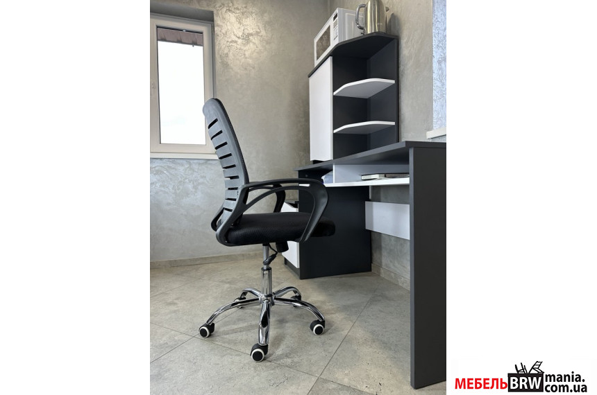 Кресло изготовлено из высококачественных, устойчивых к износу материалов. Спинка с анатомическим изгибом и подлокотниками эргономичной формы обеспечивают оптимальную поддержку тела, позволяющие длительное время работать, не чувствуя усталости. Для более эффективного теплообмена предусмотрены сетчатые вставки на спинке, а бесшумные колесики помогут оптимизировать перемещение в пределах рабочего места.