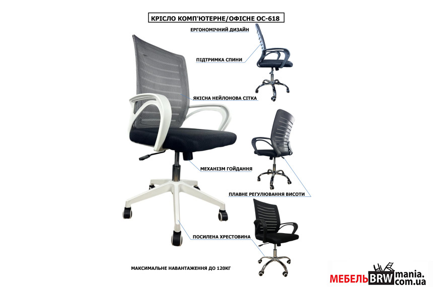 Офисное (компьютерное) кресло OC-618W идеально дополнит офисное пространство или домашний интерьер в стиле хай-тек, лофт или минимализм. Для изготовления кресла OC-618W использованы экологически безопасные, сертифицированные материалы, стойкие к износу: прочный пластик, синтетический текстиль для обивки, хромированный металл – для опоры и крестовины.