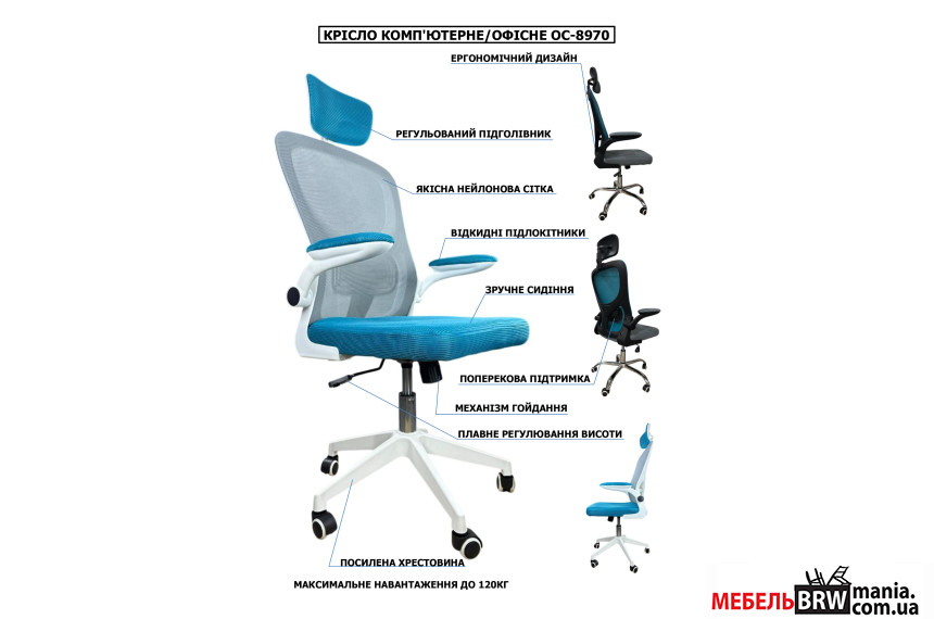 Стильное офисное кресло OC-8970W от производителя мебели Perfect Home серо-голубая гамма создано для максимального удобства и поддержки спины в течение рабочего дня.