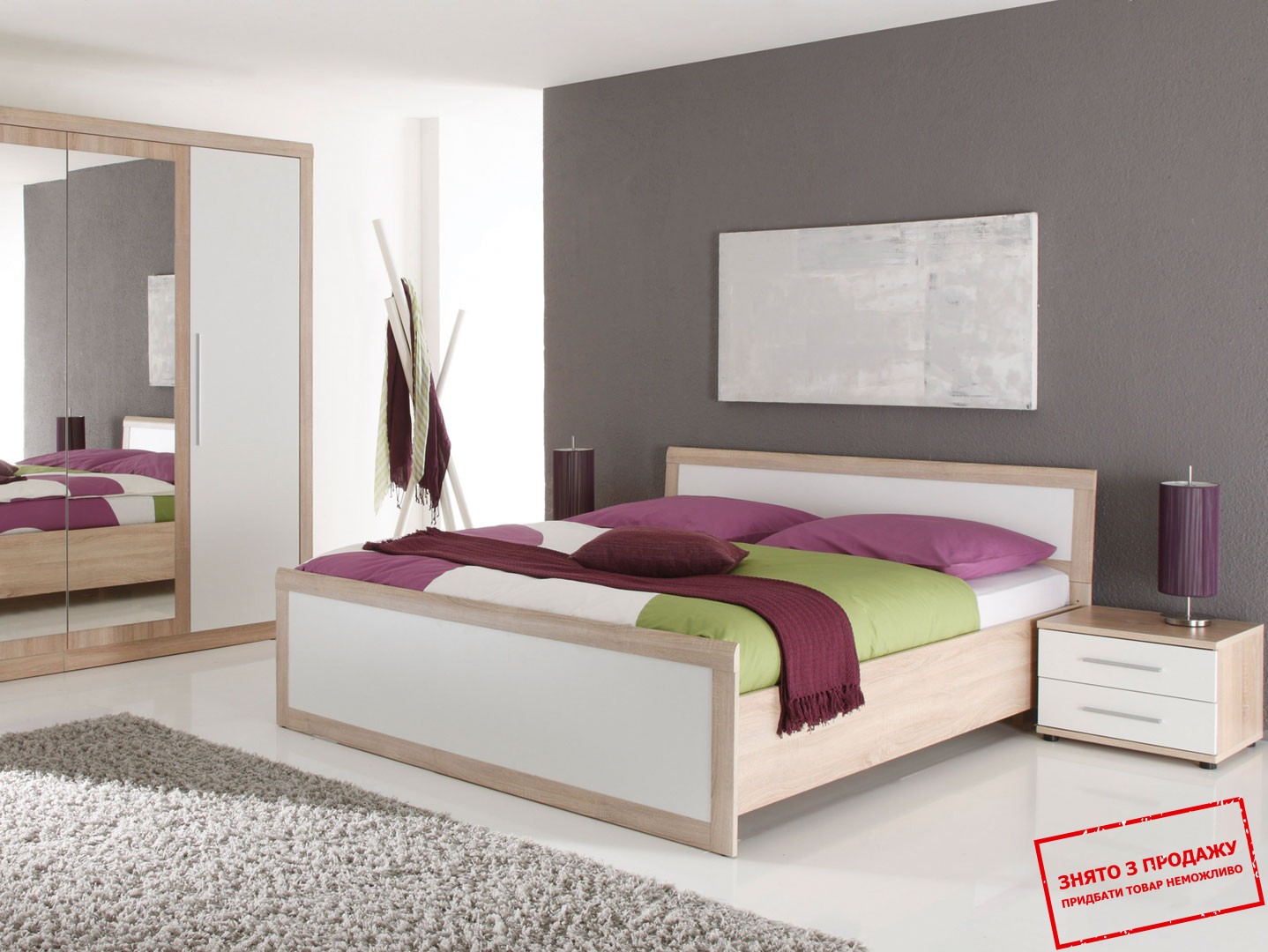 У комплект входять: двоспальне ліжко, дві приліжкові тумби і простора шафа. Чотири універсальні блоки успішно замінять ряд інших меблів, забезпечать функціональність і вплинуть на дизайн інтер'єру.