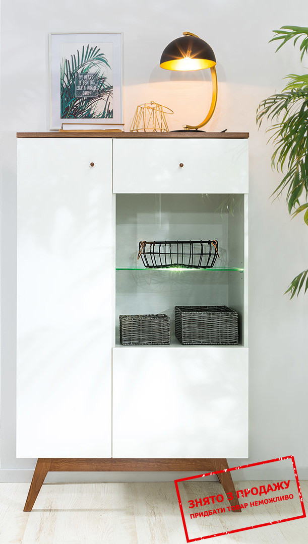 Меблі Хеда від БРВ-Польща-це набір різноманітних модулів з унікальним дизайном. Відмінним акцентом меблів є дерев'яна рама, яка спритно розташувалася знизу кожного меблевого атрибута. Стрункі ніжки додають меблям легкості, завдяки якій комоди, полиці або вітрини будуть добре розташовуватися не тільки в просторих вітальнях, але і в невеликих кімнатах. Колоритні меблеві стільниці і милі ручки надають виразний контраст блискучим білим фронтам.