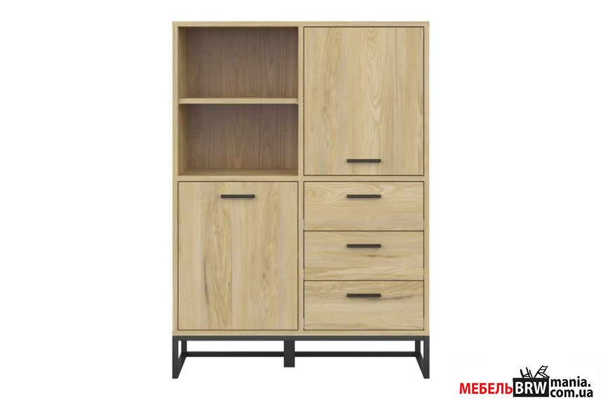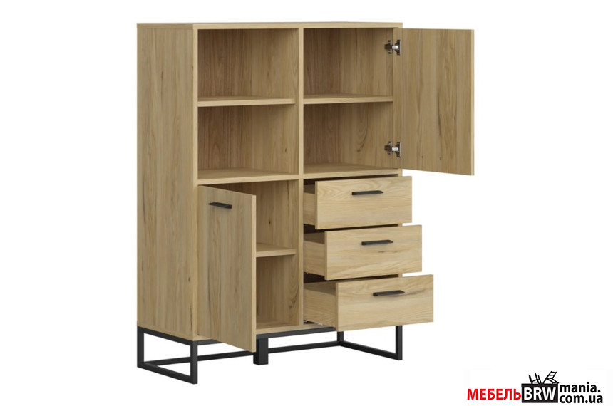 Опис: Стелаж Ramla REG2D3S BRW 2-дверний з 3 шухлядами ніжки каркас Ясен білоруський