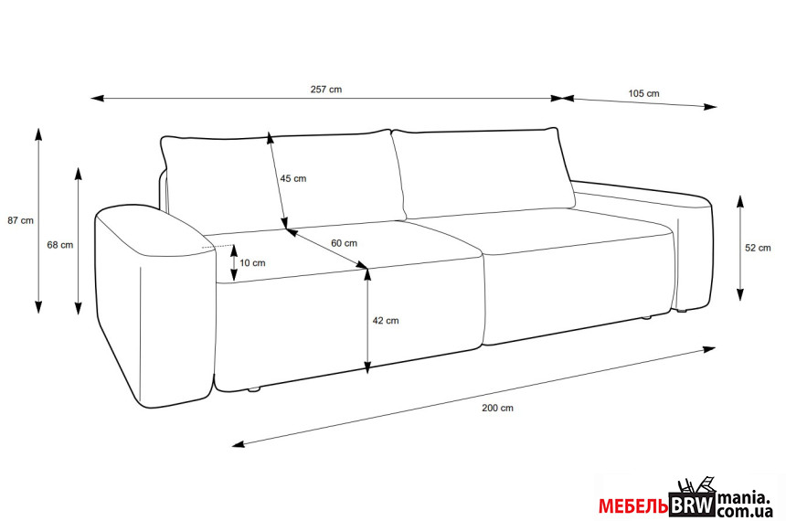 - Глибина: 105 см