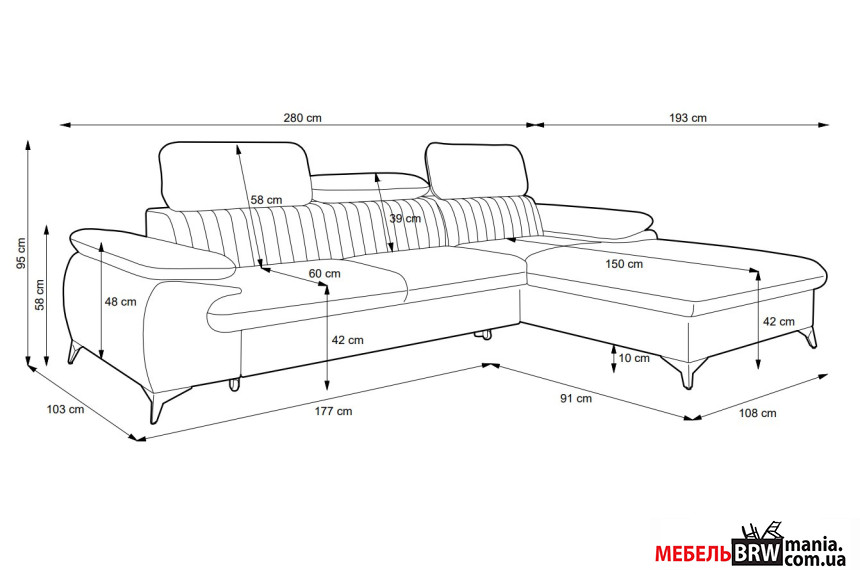 - Глибина сидіння 60 см