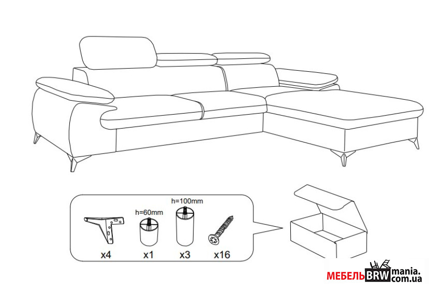 Опис: Диван кутовий розкладний БЕЛТ М / BELT M на ніжках