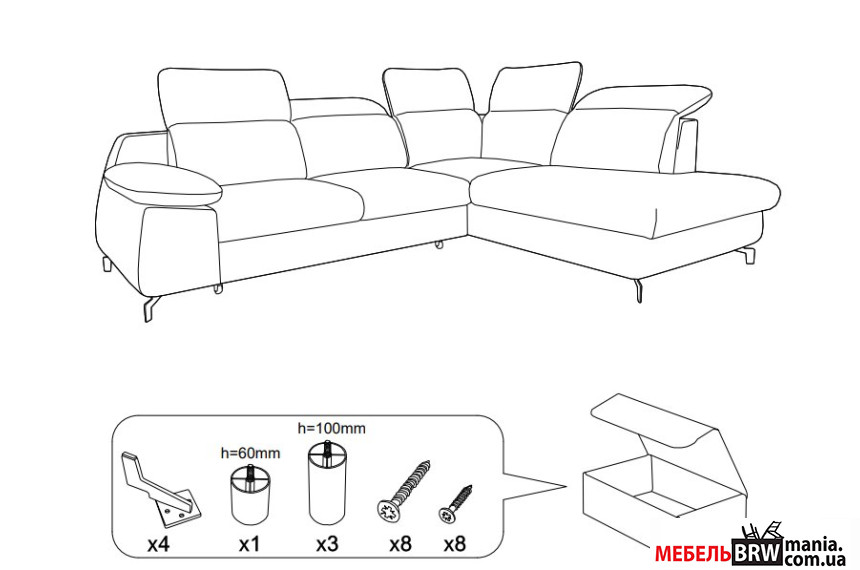 Опис: Диван кутовий розкладний КОБРА / COBRA на ніжках
