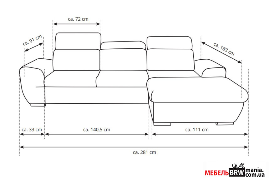 - Додаткові характеристики 3 Незнімні Подушки, Ширина - 72 см