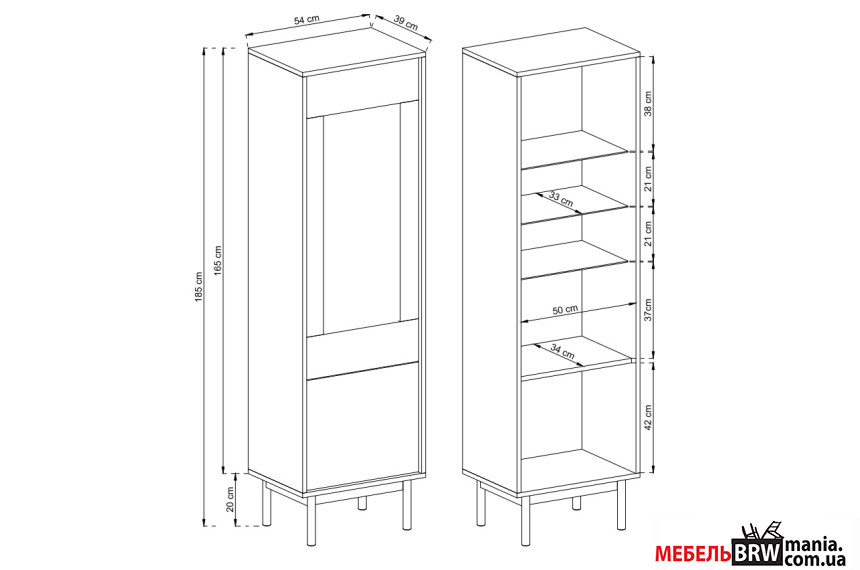Опис: Вітрина Asic 2D1W/54 2-дверна Джексон хікорі/графіт