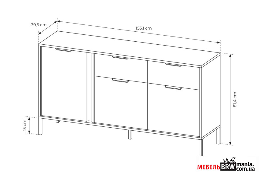 Опис: Комод Perfect Home Ларс / Lars 3D2S/153 3-дверний з 2 шухлядами Антрацит