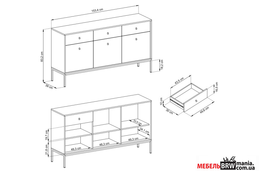 Опис: Комод Grono 3D3S/154 3-дверний з 3 шухлядами