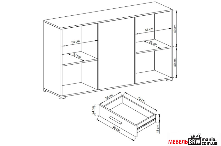 - Кількість полиць За дверцятами 2 полиці (4 відсіки)