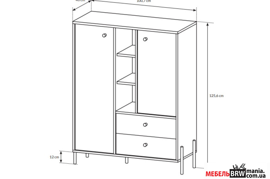 Опис: Комод Notte 2D2S/100 2-дверний з 2 шухлядами Антрацит
