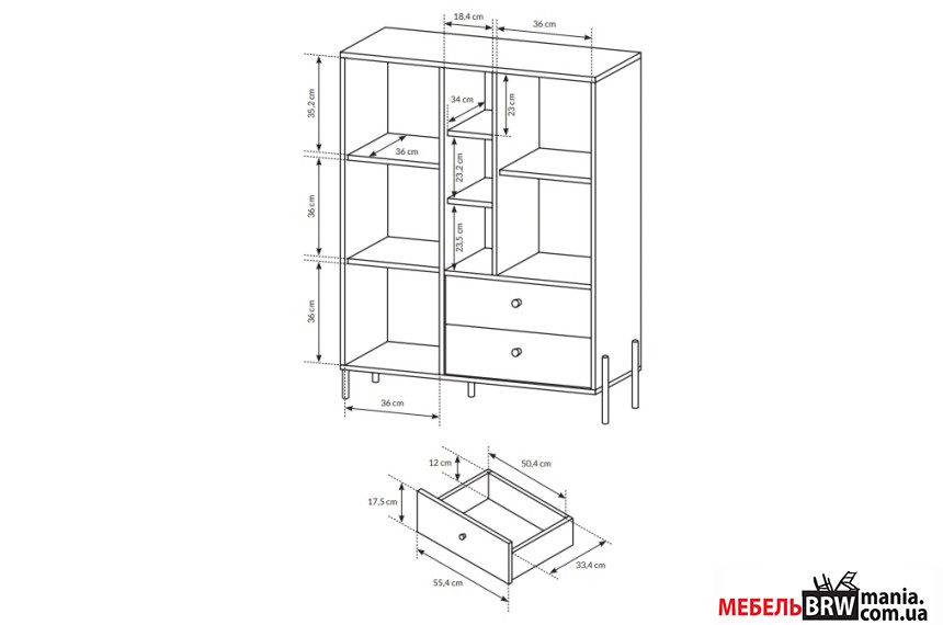 - Максимальне навантаження На полиці 5 кг, На ящик 3 кг