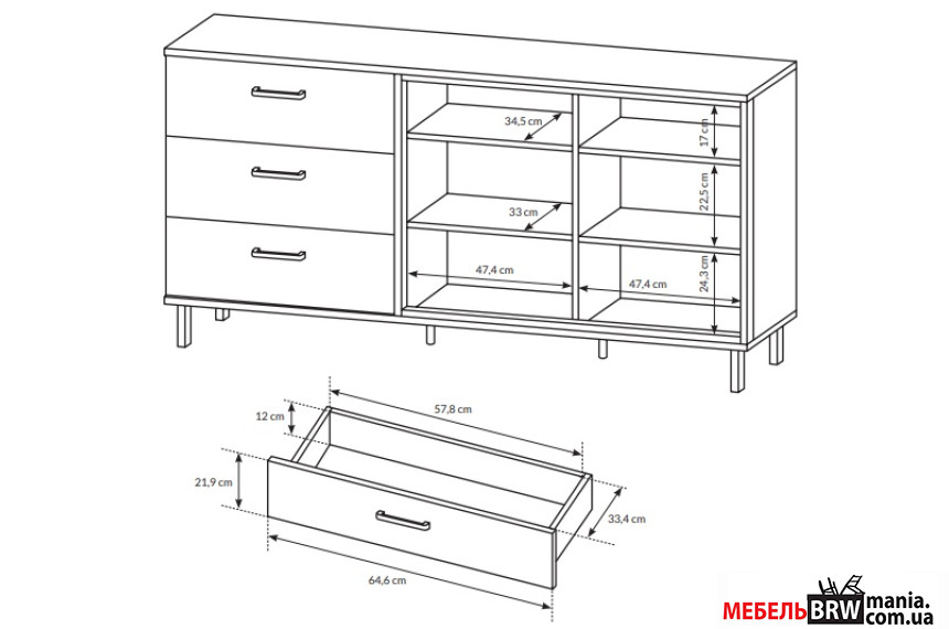 - Максимальне навантаження На полиці 5 кг, На ящик 3 кг
