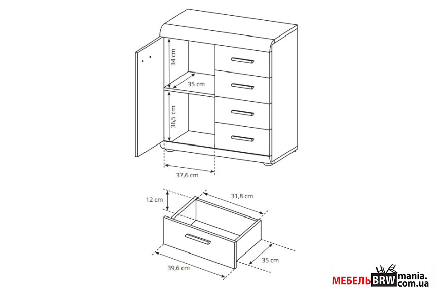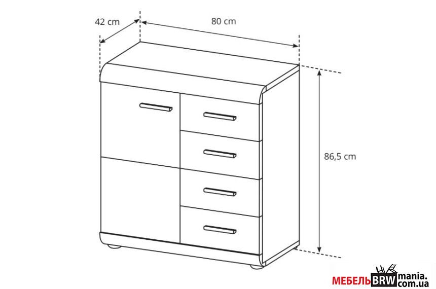 Опис: Комод Link 1D4S/80 1-дверний з 4 шухлядами Дуб сонома