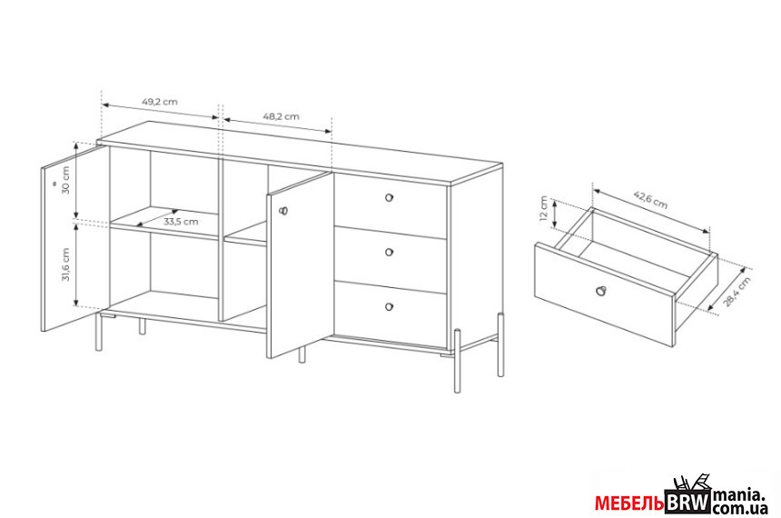 - Кількість висувних шухляд 3