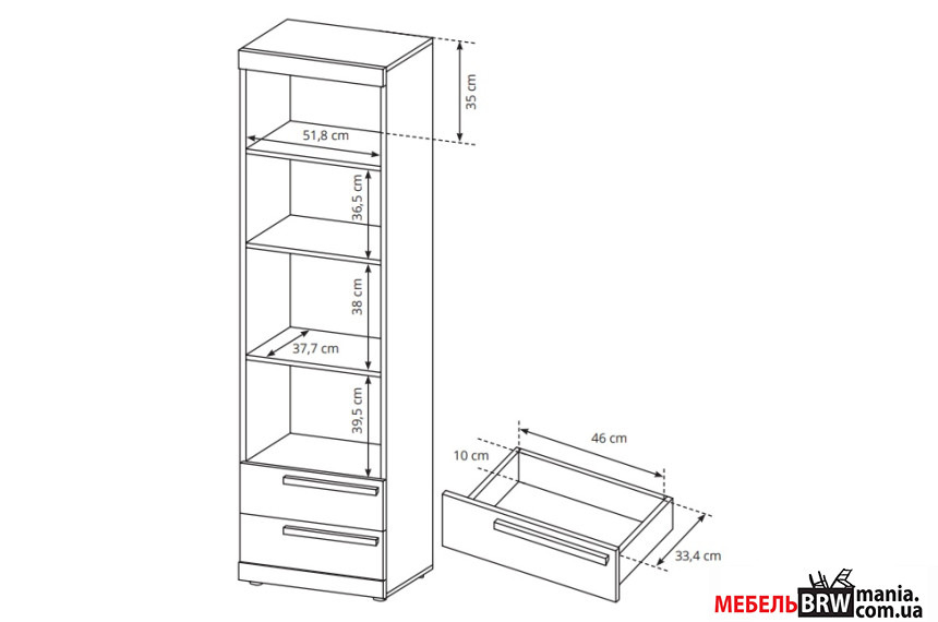 - Кількість висувних шухляд 2
