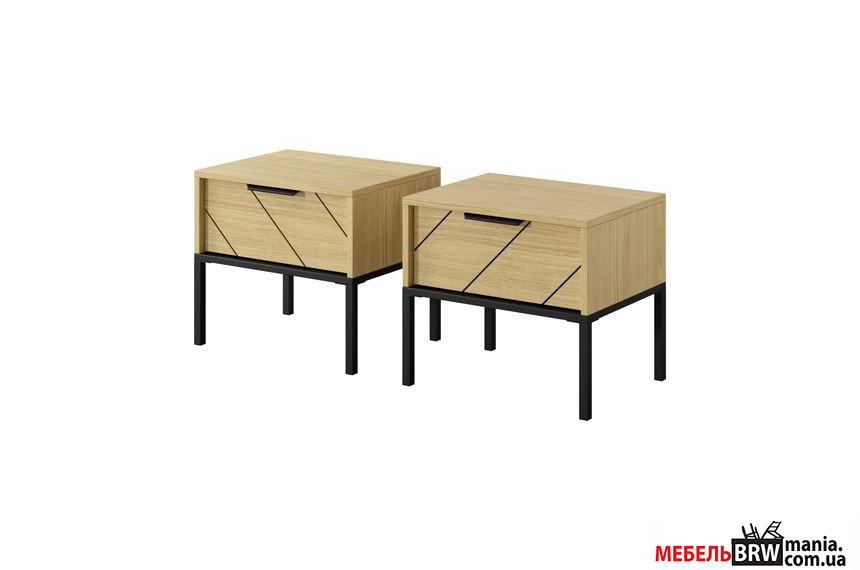 Тумби приліжкові Verso 1S/47 з 2 шухлядами Дуб сканді/чорний