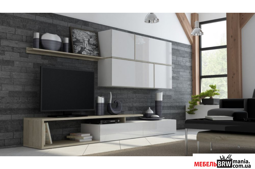 СТІНКА CAMA GOYA від польського виробника меблів КАМА зробить процес комфортного перегляду телевізора у вітальні затишним і приємним. Набір у вітальню GOYA - приклад надійності, краси і витонченості. Очевидна характеристика меблевого виробу радує функціональною конструкцією з плити ДСП високої якості ламінованого різновиду, а також ламінованої плити МДФ. Меблева атрибутика світлих відтінків («білий», «білий глянець», «дуб Сонома») візуально розширює простір і робить кімнату більш легкою і затишною за рахунок сонячних променів. Атрибут такого типу перетворить вашу квартиру в ще більш продуманий концепт. Особливим чином це стосується сучасних стилів в дизайні інтер'єру. Не тільки дизайнерам відомо, що легкість інтер'єру в цілому досягається завдяки "легкості" відтінків. Набір у вітальню радує компактністю і трьома атрибутами: тумбою під телевізор, навісною вітриною і поличкою. Невигадлива, але вдала форма з округленими кутами і додатковими захисними елементами меблів свідчить про виробництво високого рівня і продуману ергономіку навіть маленьких масштабів. Комфортна ціна товару виправдовує всі якісні можливості. Купити СТІНКУ CAMA GOYA можна на нашому сайті в один клік навіть в цю хвилину.