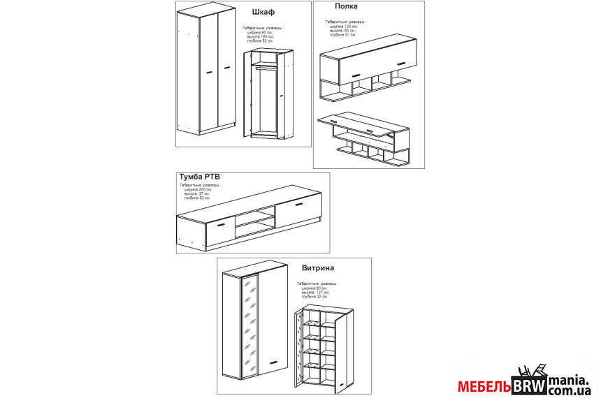 Ректус є функціональним комплектом для вітальні, що виробляється української фабрикою Гербор. Для клієнтів пропонується оригінальне поєднання колірних відтінків венге магія (корпус) і горіх каліфорнійський в фасаді.