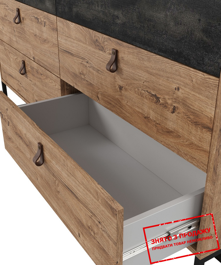Компонентами системи є висока вітрина, низька вітрина, три комоди, полиця, журнальний стіл і тумба під телевізор. Вироби створили за допомогою ламінованого МДФ (медіум-щільна фіброплита). Це матеріал, який отримують шляхом змішування деревних волокон із синтетичним сполучним і подальшою обробкою під високим тиском і температурою. Потім на поверхню МДФ наноситься шар ламінату - тонкої плівки з багатошарового пластику або смоли. Ось деякі ключові особливості та переваги ламінованого МДФ: варіативність дизайну, міцність і стійкість, легкість догляду, опір ультрафіолетовому випромінюванню, універсальність використання.