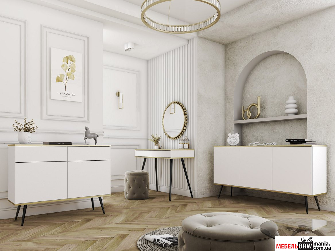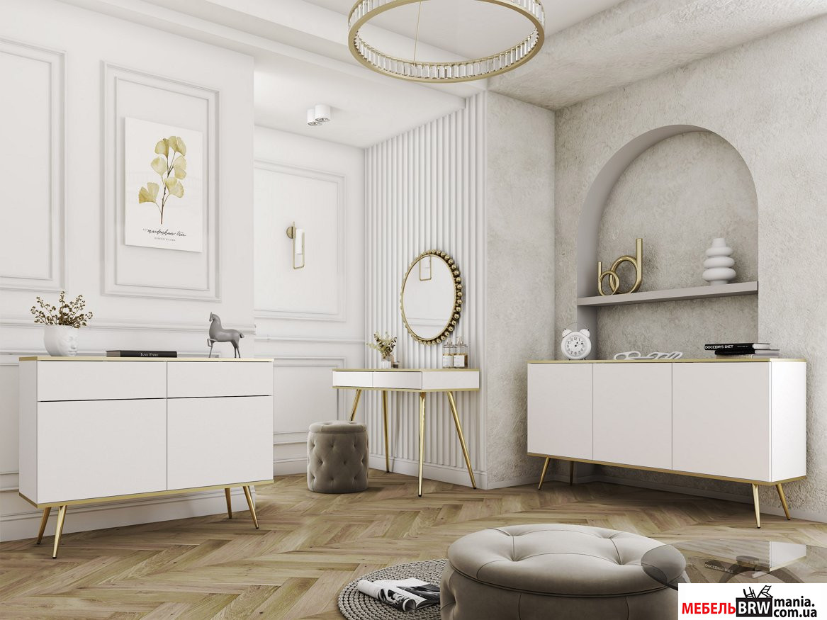 Саме такі якості характеризують й модульну вітальню ORO білий – стильне