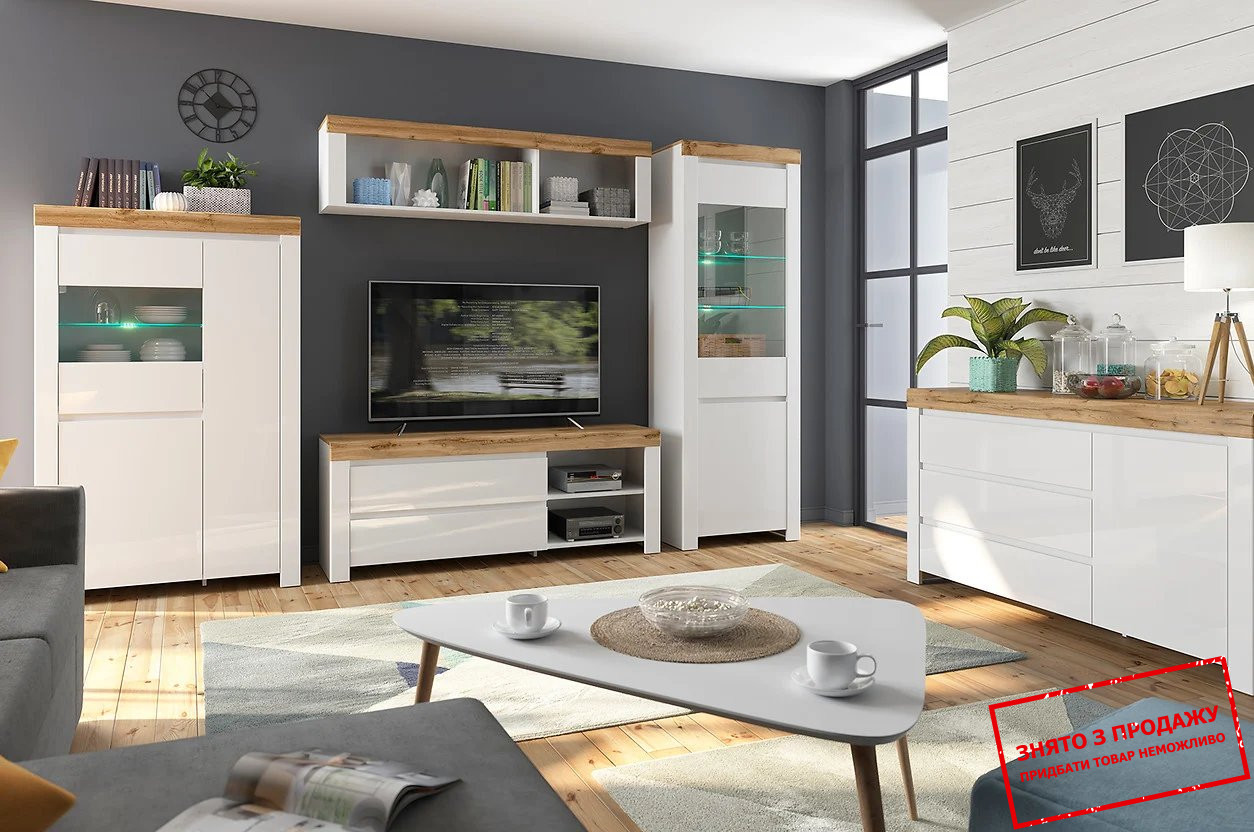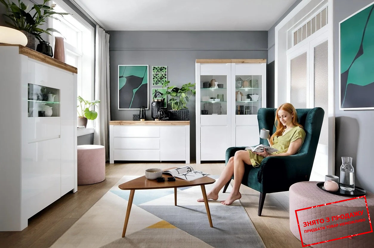 Вітрина Holten REG2D1W BRW 3-дверна Білий/білий глянець