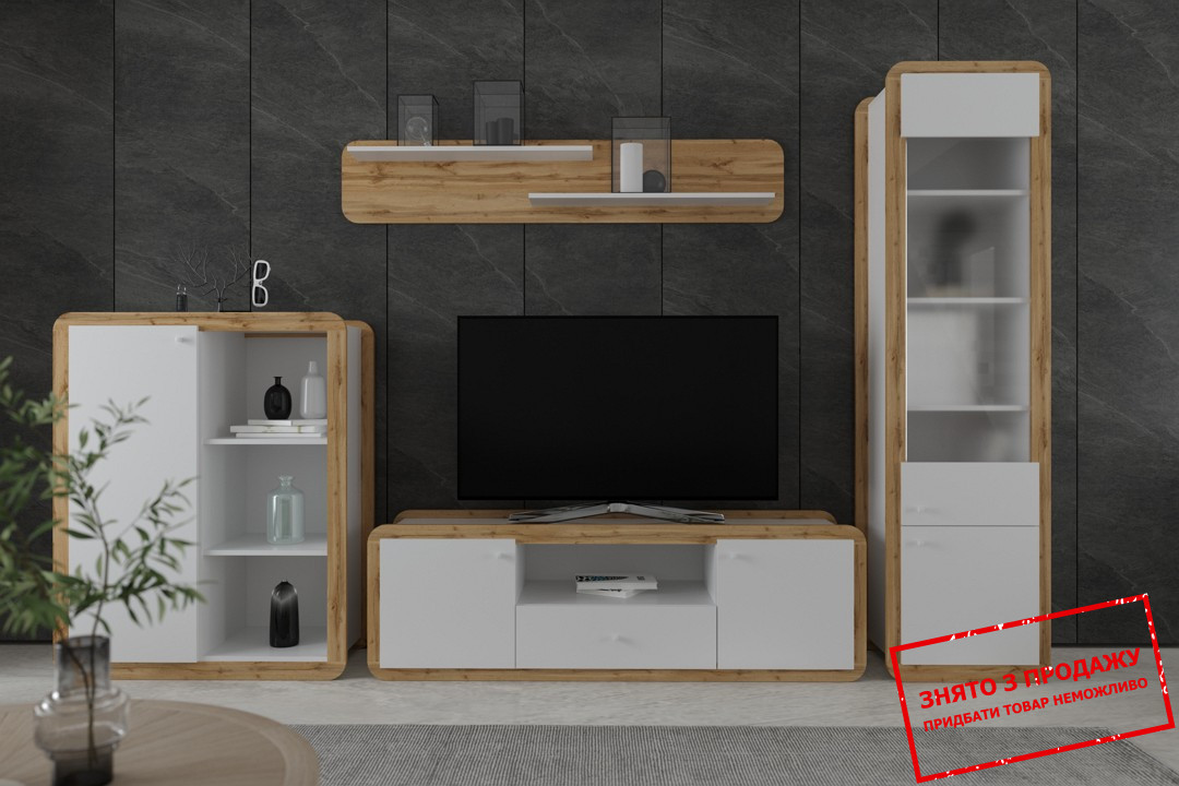 - Тумба KOM1DO Скі Gerbor: Однодверна тумба з трьома нішами з модульної вітальні Скі є відмінним рішенням для зберігання різноманітних речей. Виготовлення з ламінованої ДСП завтовшки 16 мм та використання навісних петель HETTICH підкреслюють високу якість цього елемента вітальні.