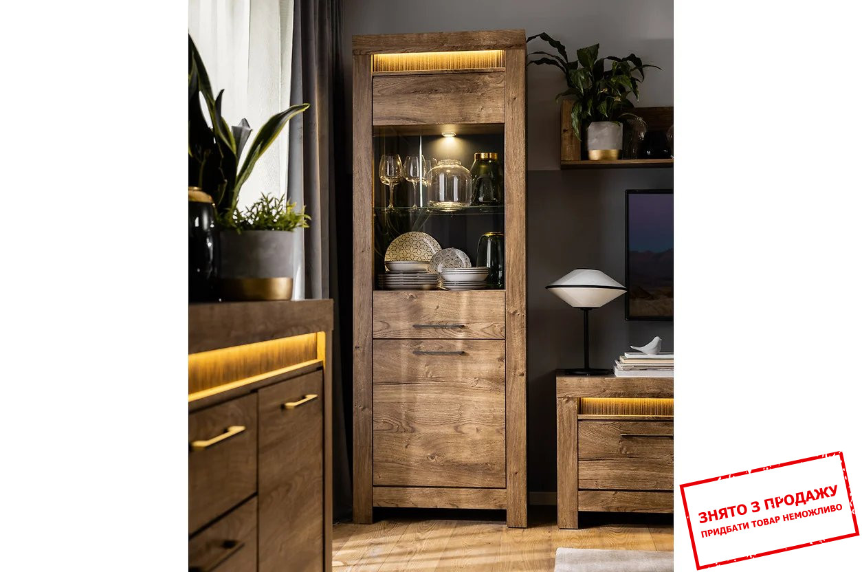 Вітрина Torin REG1D1W2S BRW 2-дверна з 2 шухлядами Дуб ріббек коричневий