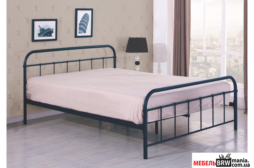 елементами інтер'єру в кімнаті. Полуторне ліжко чорного кольору зроблено з
